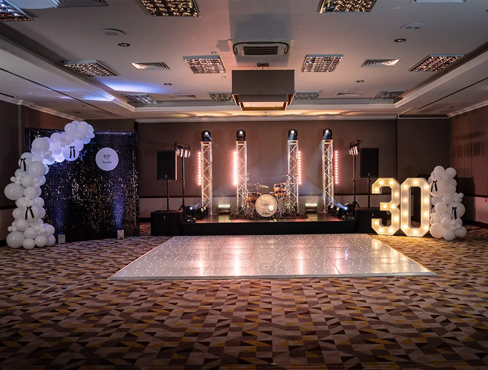 You've chosen the perfect Cobham venue for your big bash, but now it's time to personalise that space with a premium party decor package. Our range features decor pieces for all settings - a sequin wall with themed balloon garland can be the perfect backdrop for your welcome drinks photos and your party will go to another level with a white LED dance floor, personalised neon and light-up numbers with themed balloon garland.
