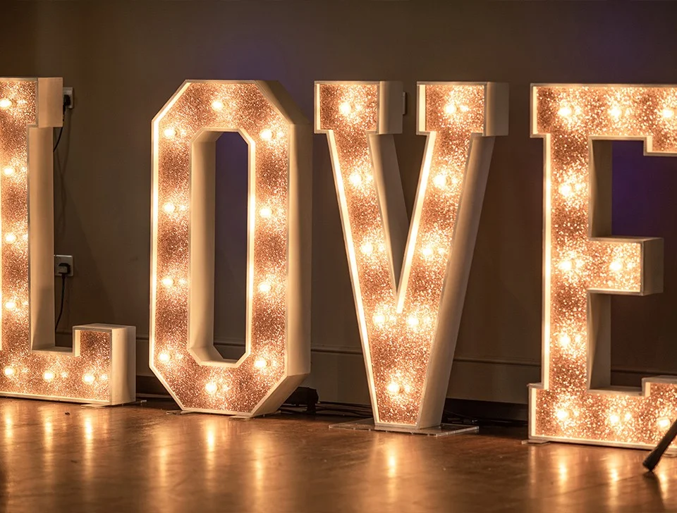 The most important thing is the quality of the item. The decor will set the mood in your venue and also be a key feature in your event photos. It's essential that the items you are hiring are well made, well maintained, aesthetically pleasing (not all decor items are the same, for example, the font and style of light-up letters can vary greatly between suppliers) and are installed by experienced professionals. You'll also need to consider the size and style of the decor and how it will work in your chosen venue or space.
