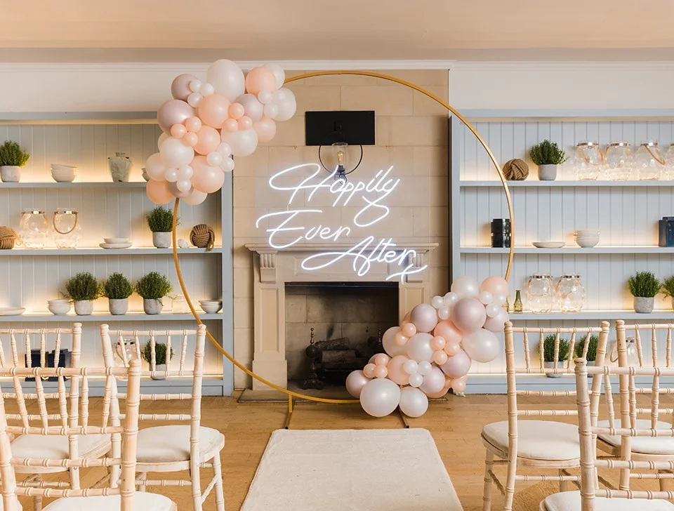 You've chosen to hold your event at Hitchin Priory, and now it's time to personalise that space with a premium decor package. Our range features decor pieces for all event types - a sequin wall branded with a bespoke neon sign and themed balloon garland can be the perfect backdrop for your welcome photos, and your party will go to another level with a white LED dance floor, accompanied by your word of choice in large 4 foot light-up letters. For a friendly chat about your decor requirements, please call us on 0800 975 0265 and one of our experts will be happy to help.