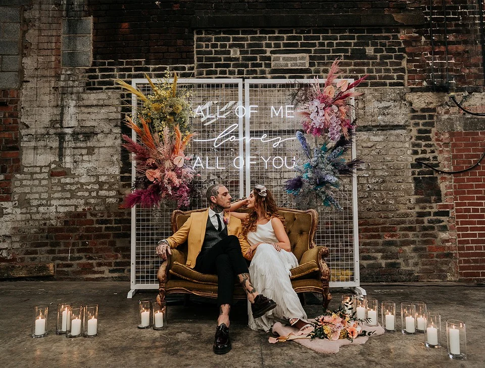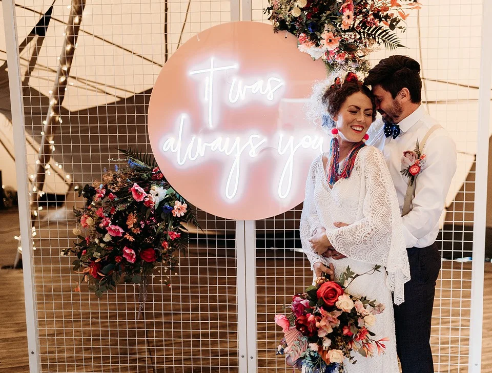 Elizabeth James Events offer a bespoke wedding neon sign service, please get in touch with our expert team and they'll be able to assist with the design and provide costs for you to purchase your very own neon, which you can keep to decorate your home after the wedding!