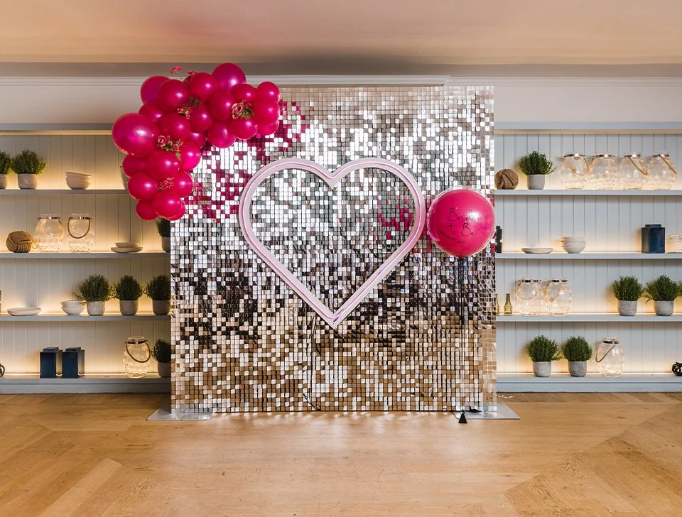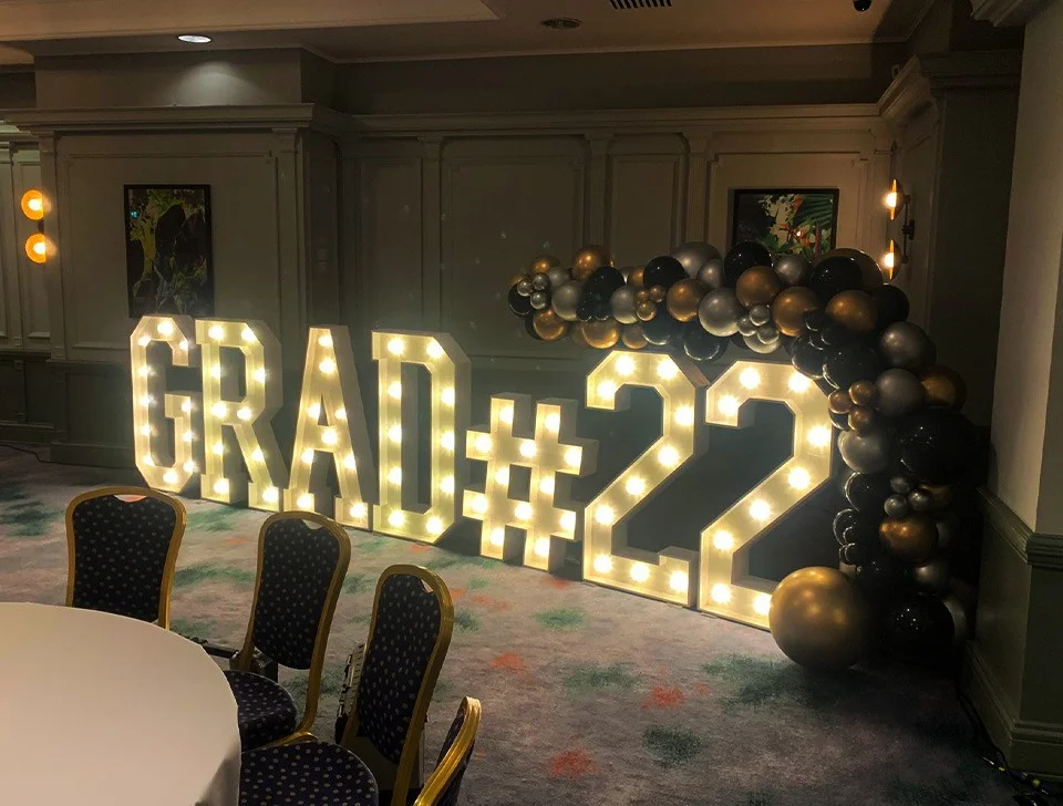You've chosen the perfect Potters Bar venue for your school prom, but now it's time to personalise that space with a premium prom decor package. Our range features decor pieces for all settings - a sequin wall branded with your school or college name and themed balloon garland can be the perfect backdrop for your welcome photos, and your prom party will go to another level with a white LED dance floor, accompanied by your school name in large light-up letters.