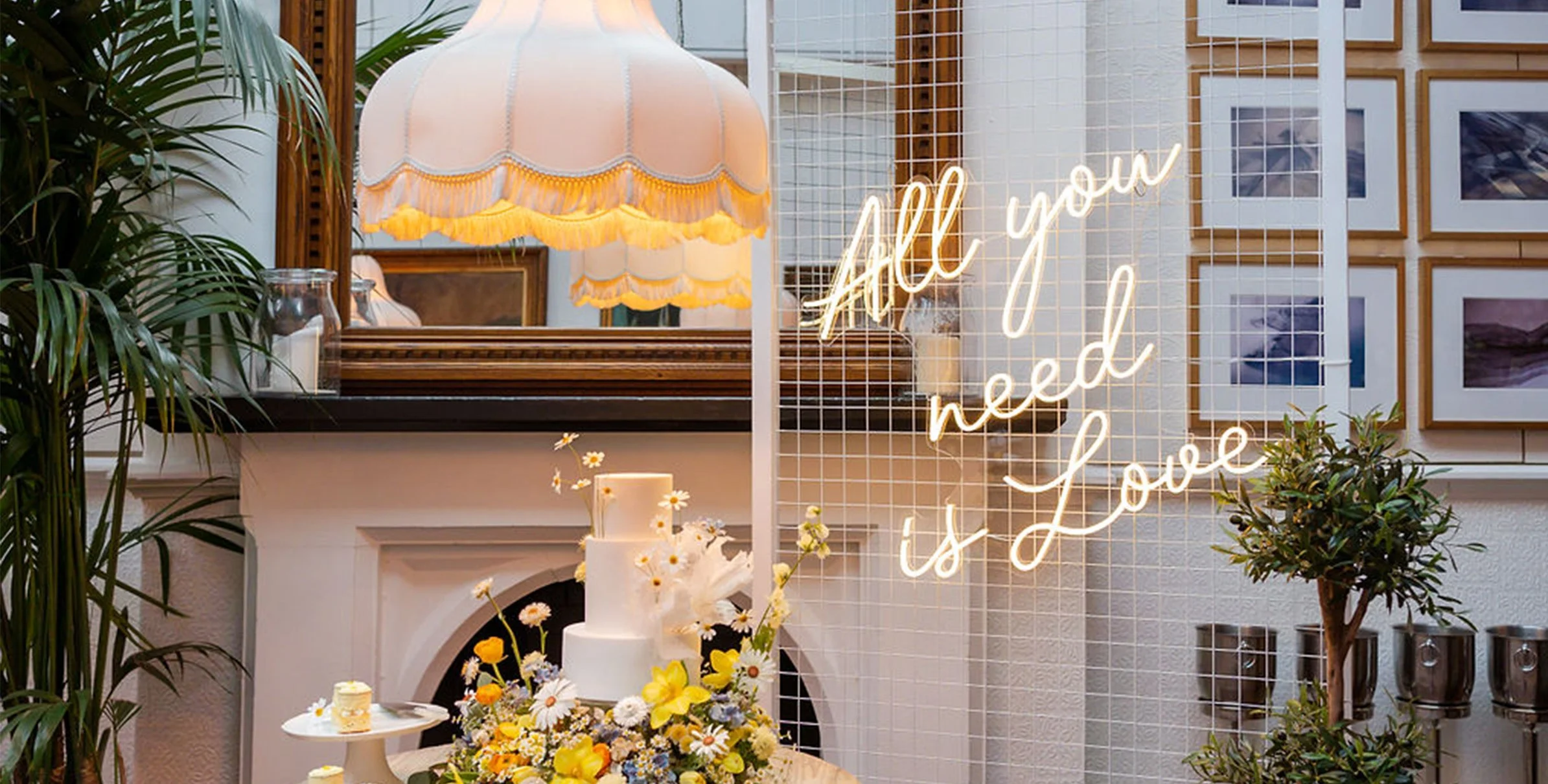 If this famous song, or just these particular words, resonate with you and your partner, then this neon sign would make the most perfect backdrop to any part of your special day. Use it as the ceremony aisle backdrop, behind you at the top table or for the cake signing, or somewhere near the dance floor, and you'll be blessed with the most perfect photos to keep forever.