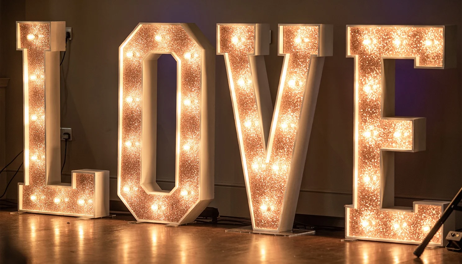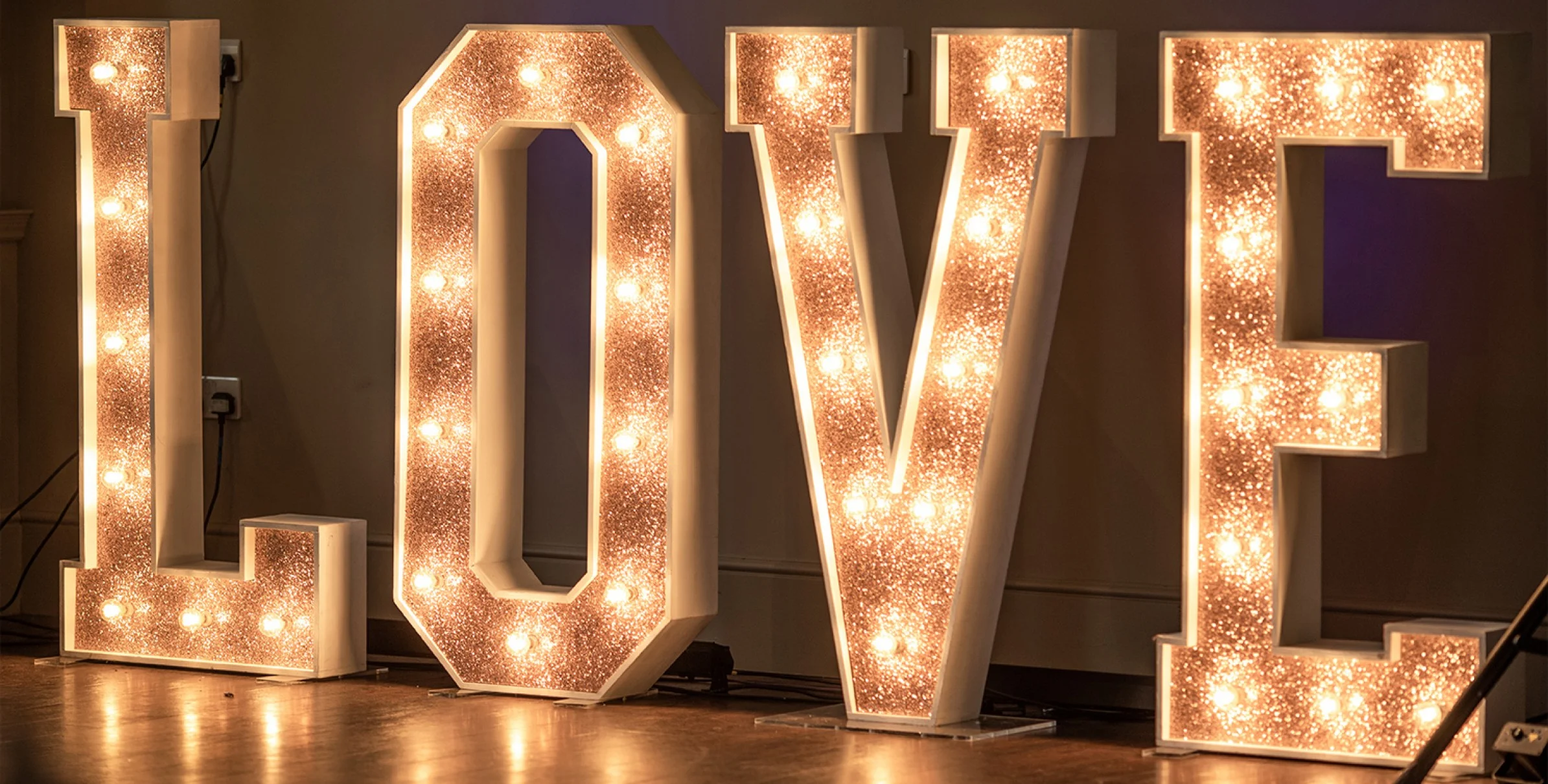 Each letter and item have its own single socket. We bring plenty of extension leads of varying lengths to ensure we can always work with the power supplies available.