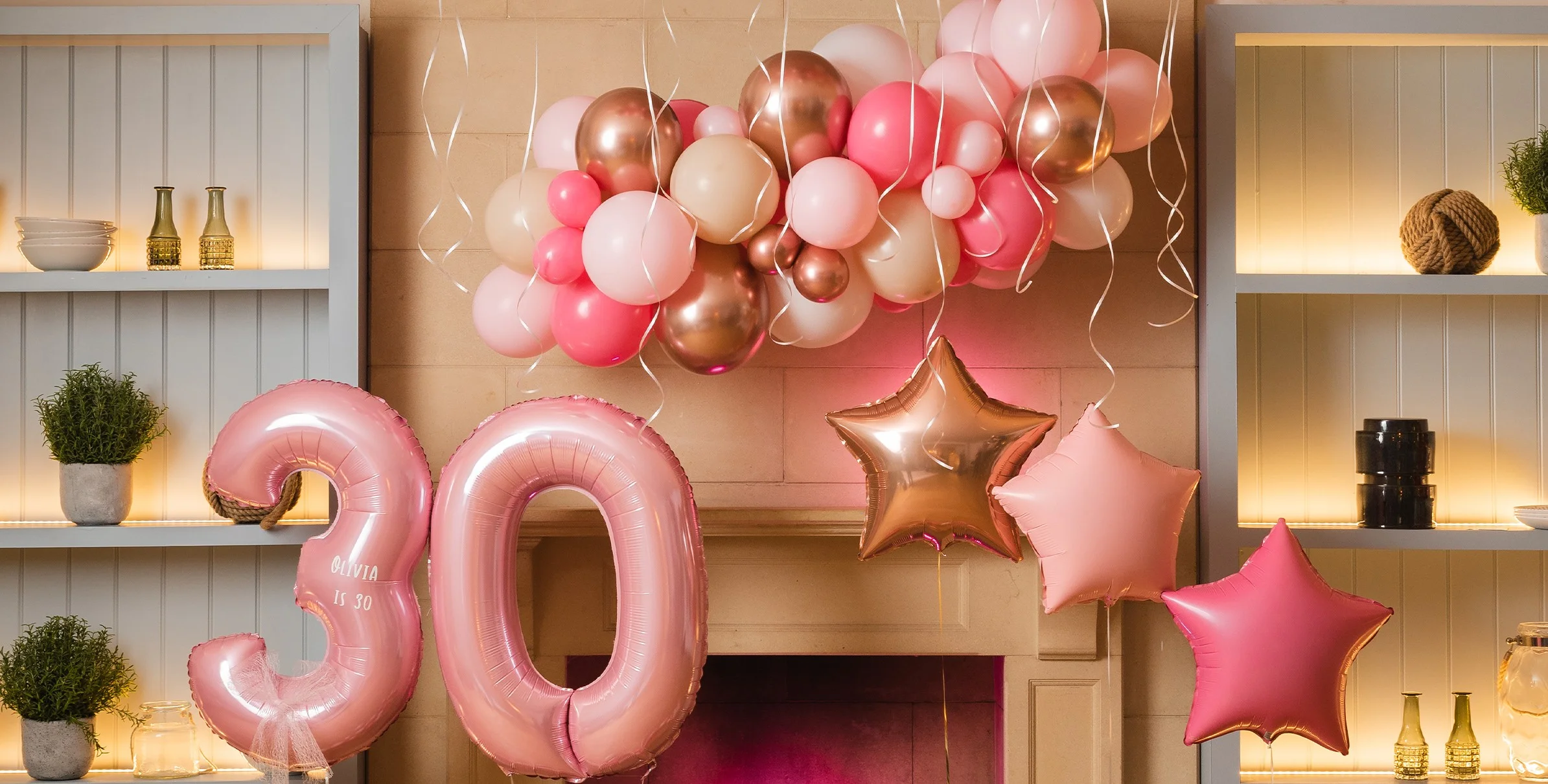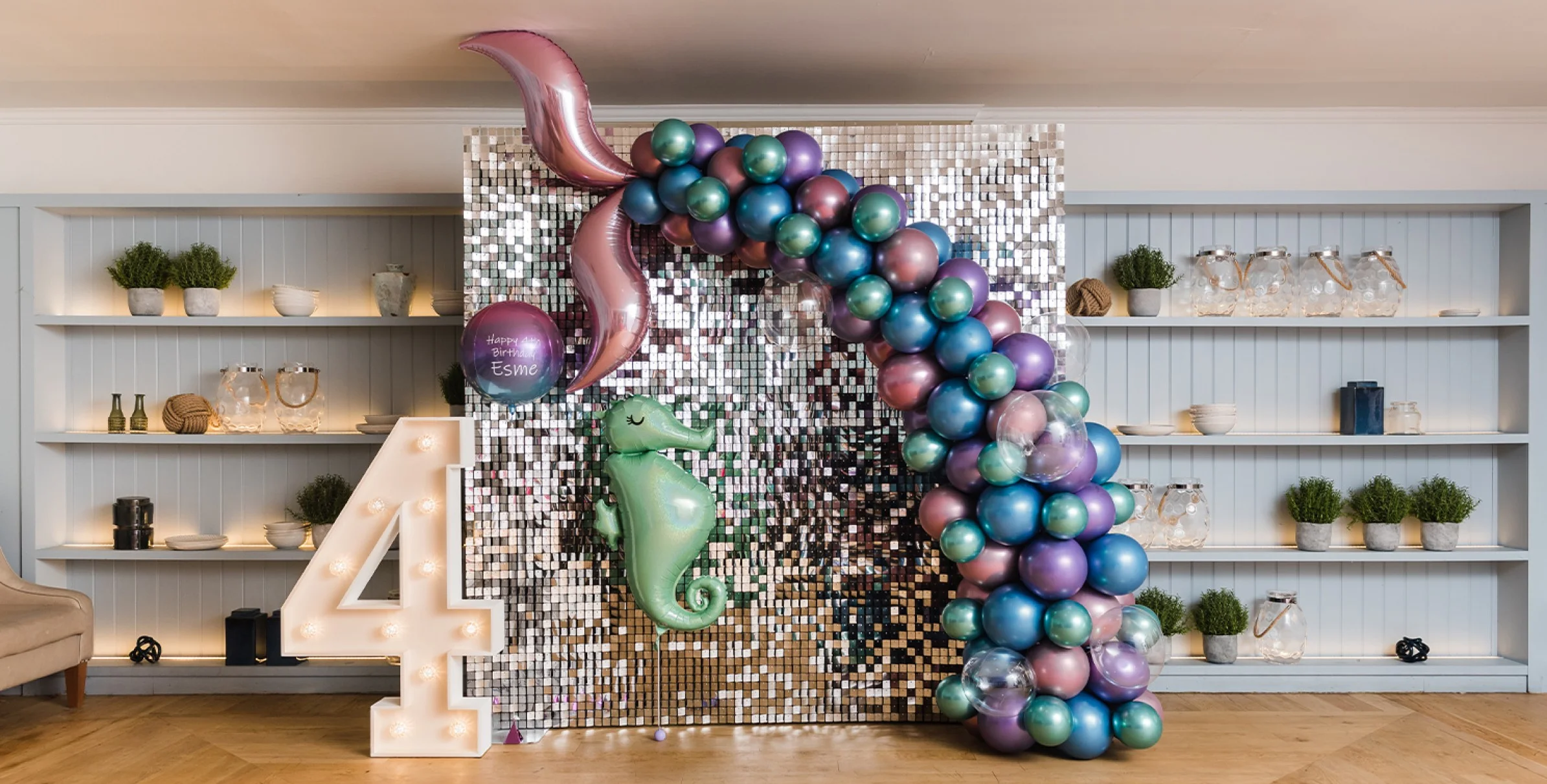 Add a personalised helium balloon, any one of our backdrops and some light up numbers (or anything else from our hire item range) to your custom balloon garland, and you're WOW factor party is complete!