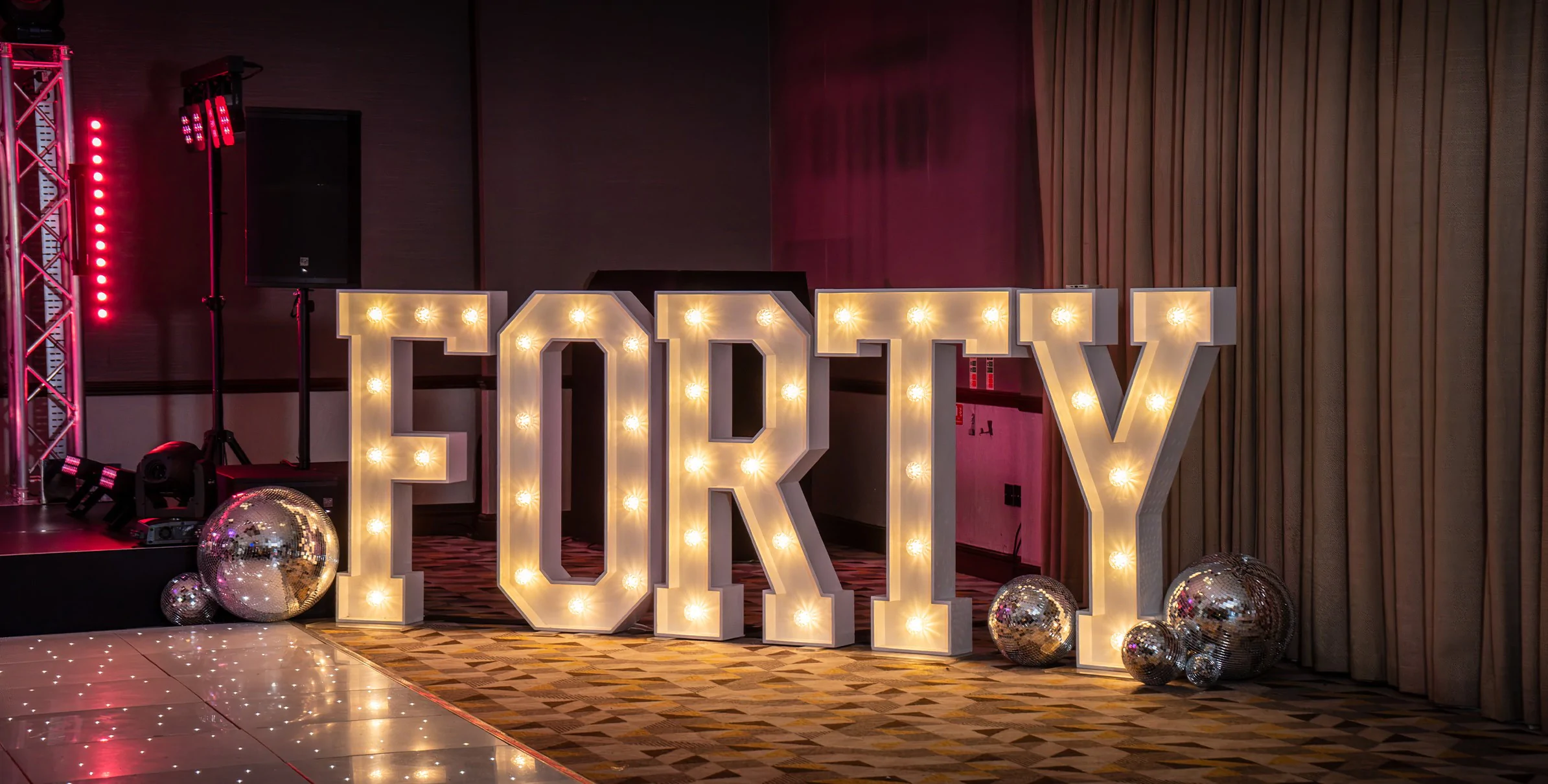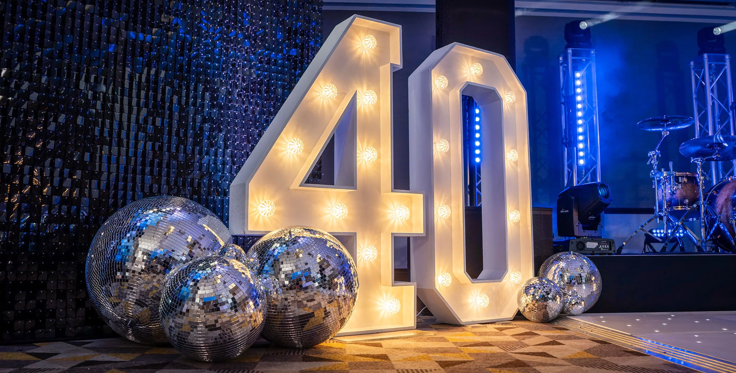 Saturday was fab! The decorations went perfectly with my 70’s disco theme and everyone loved having photos in front of the glitter wall and also the hanging sign. Thank you for making the venue look fantastic!