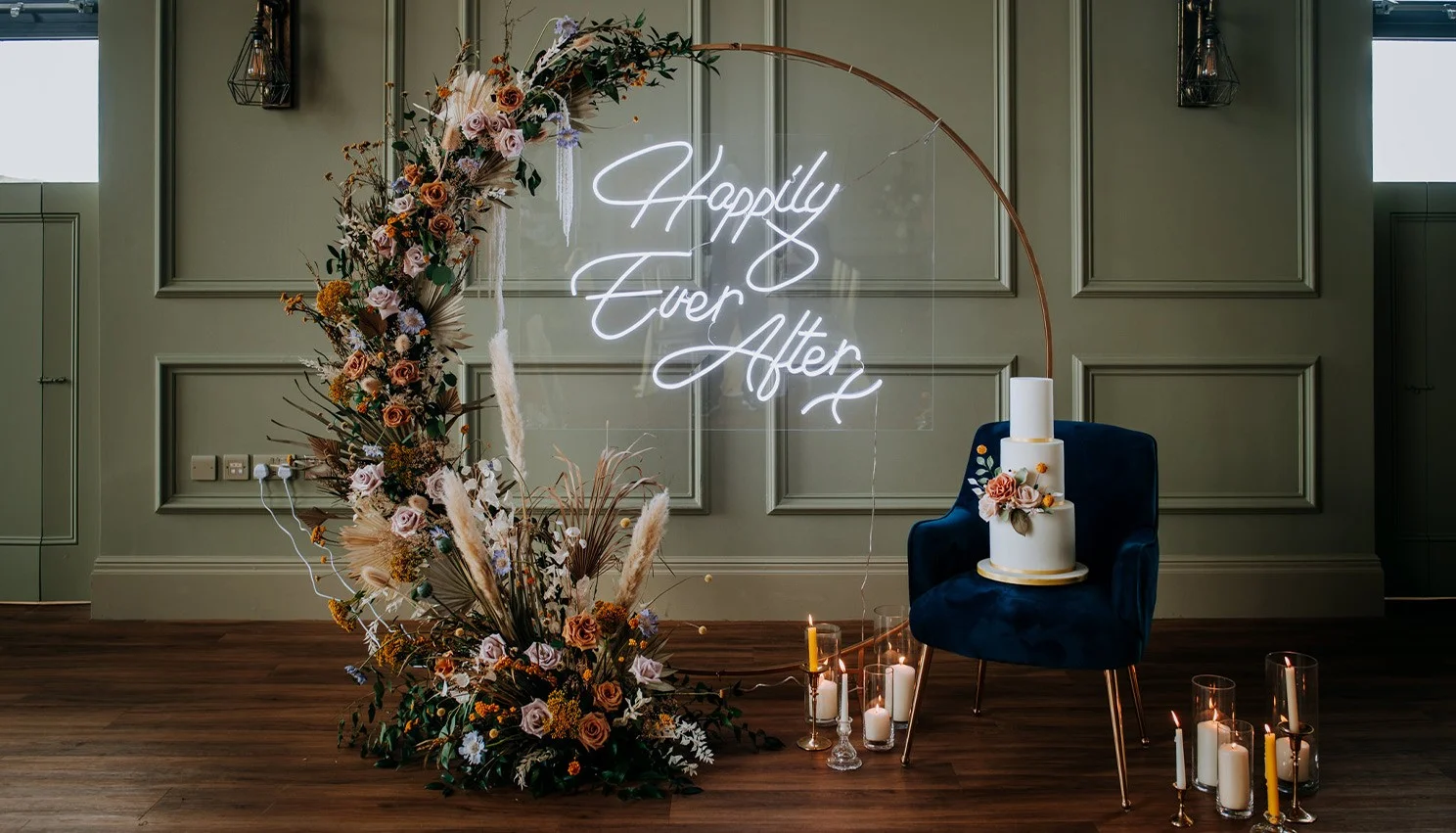 The Moongate & Neon Sign was amazing! It looked so good! Great service too. I never saw the staff delivering this but as far as I am aware everything ran smoothly! The phone calls we received building up to the wedding were clear and great communication. Thanks so much, we will defo be in touch again if we have another event to plan!