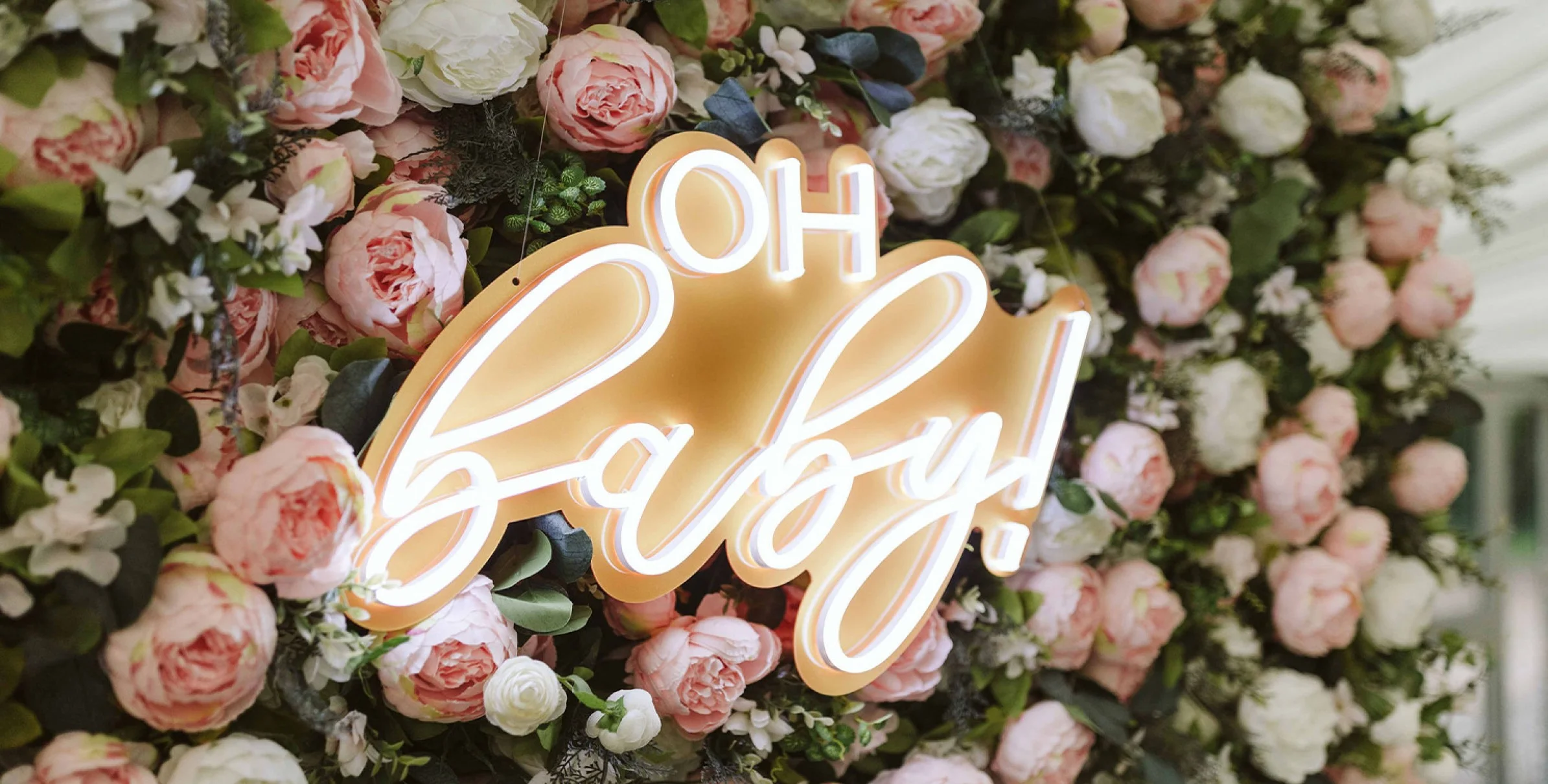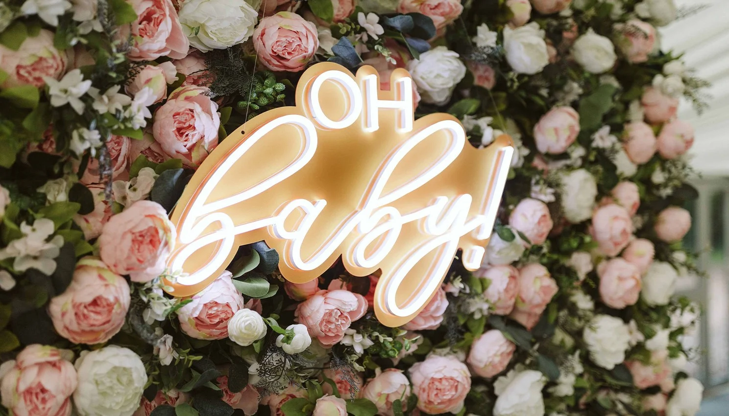 Our super Cute Neon 'Oh Baby' Sign looks lovely against our Flower Walls, or simply proppoed somewhere in your home or venue. We have larger and smaller Baby Shower decor items suitable for celebrations of all sizes, and we can put a bespoke package together to suit your requirements.