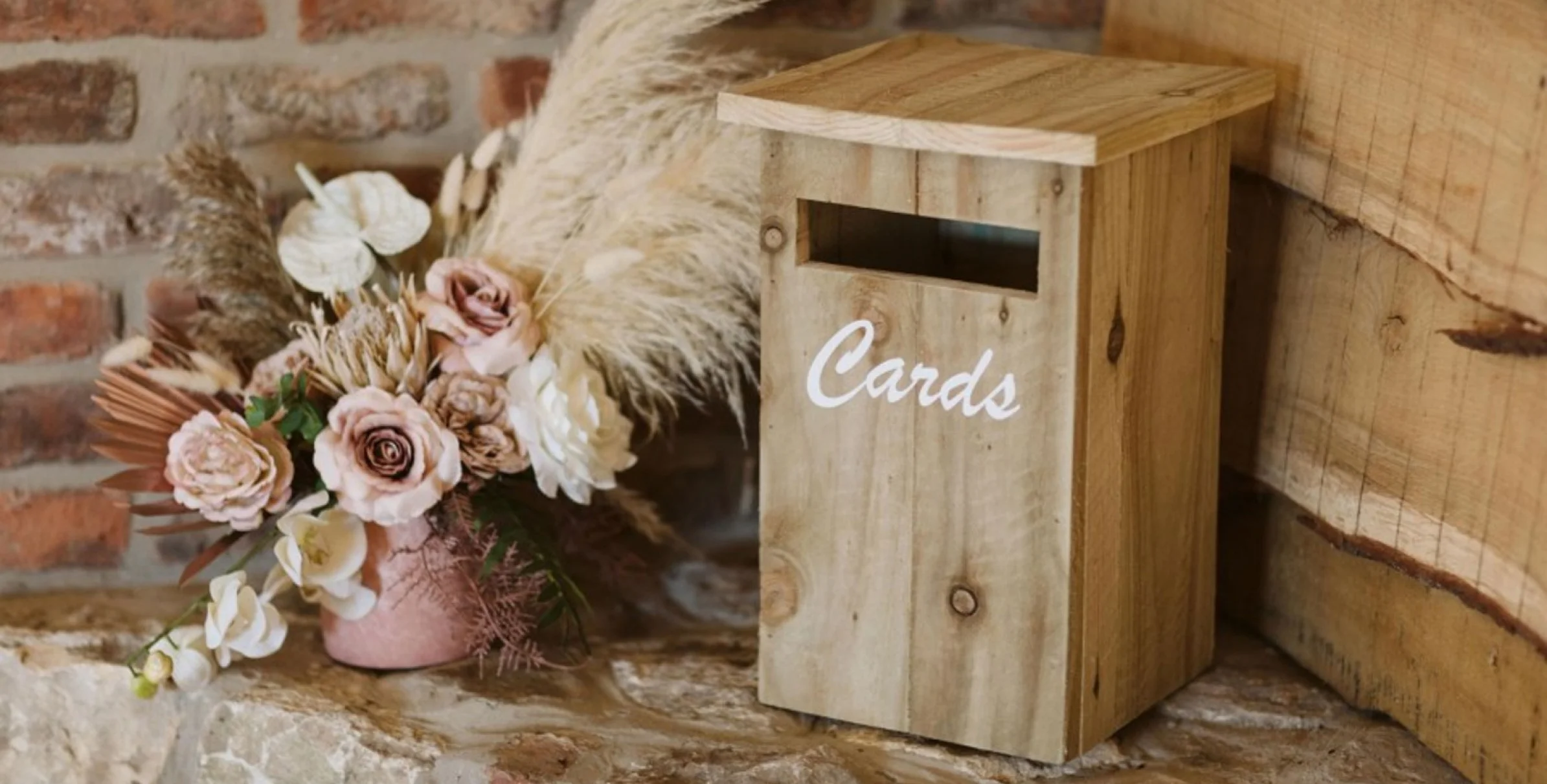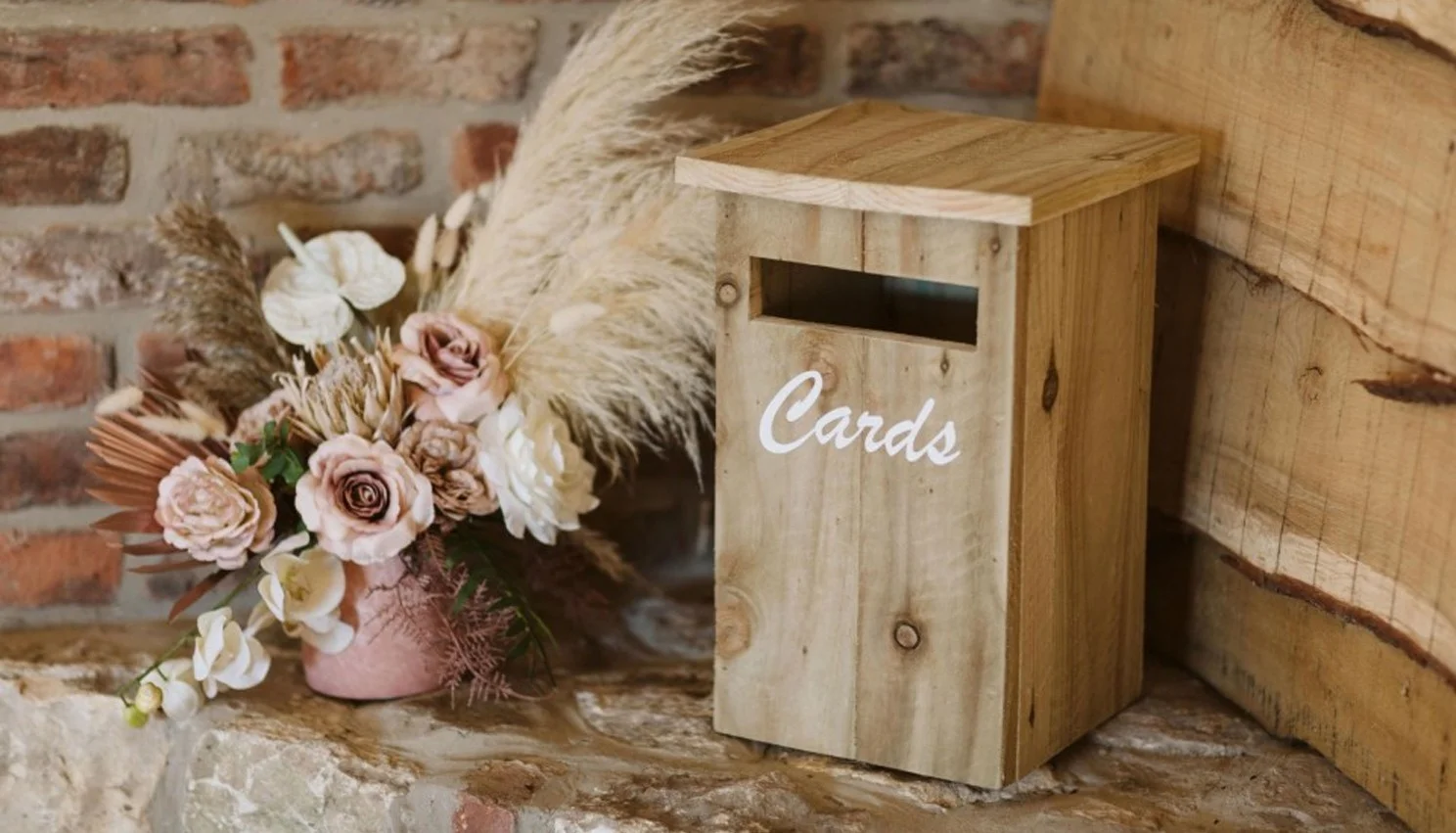 Perfectly functional to store all your cards safely throughout the day, and also perfectly inkeeping with the rest of your Rustic style, this Card Box will look perfect on your gift table - just add a stem or two of florals to match the rest of your day!