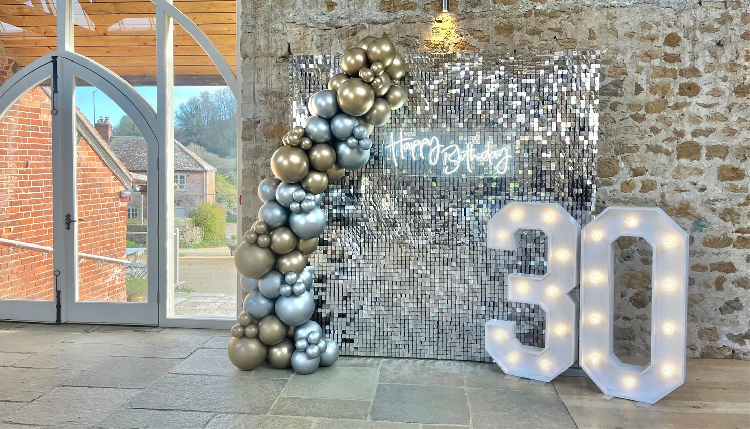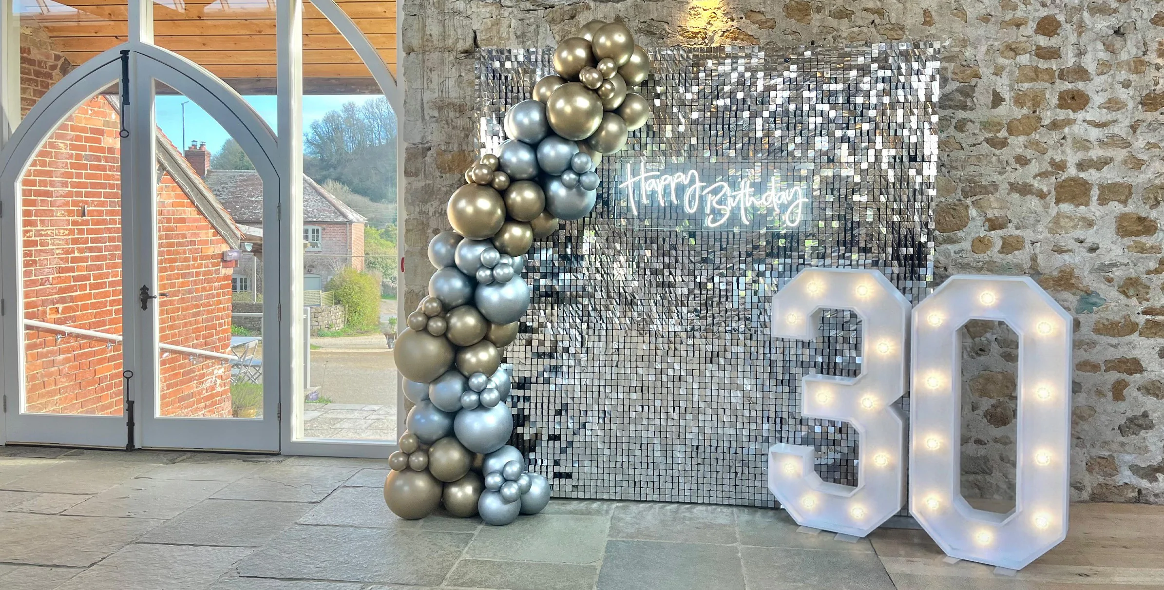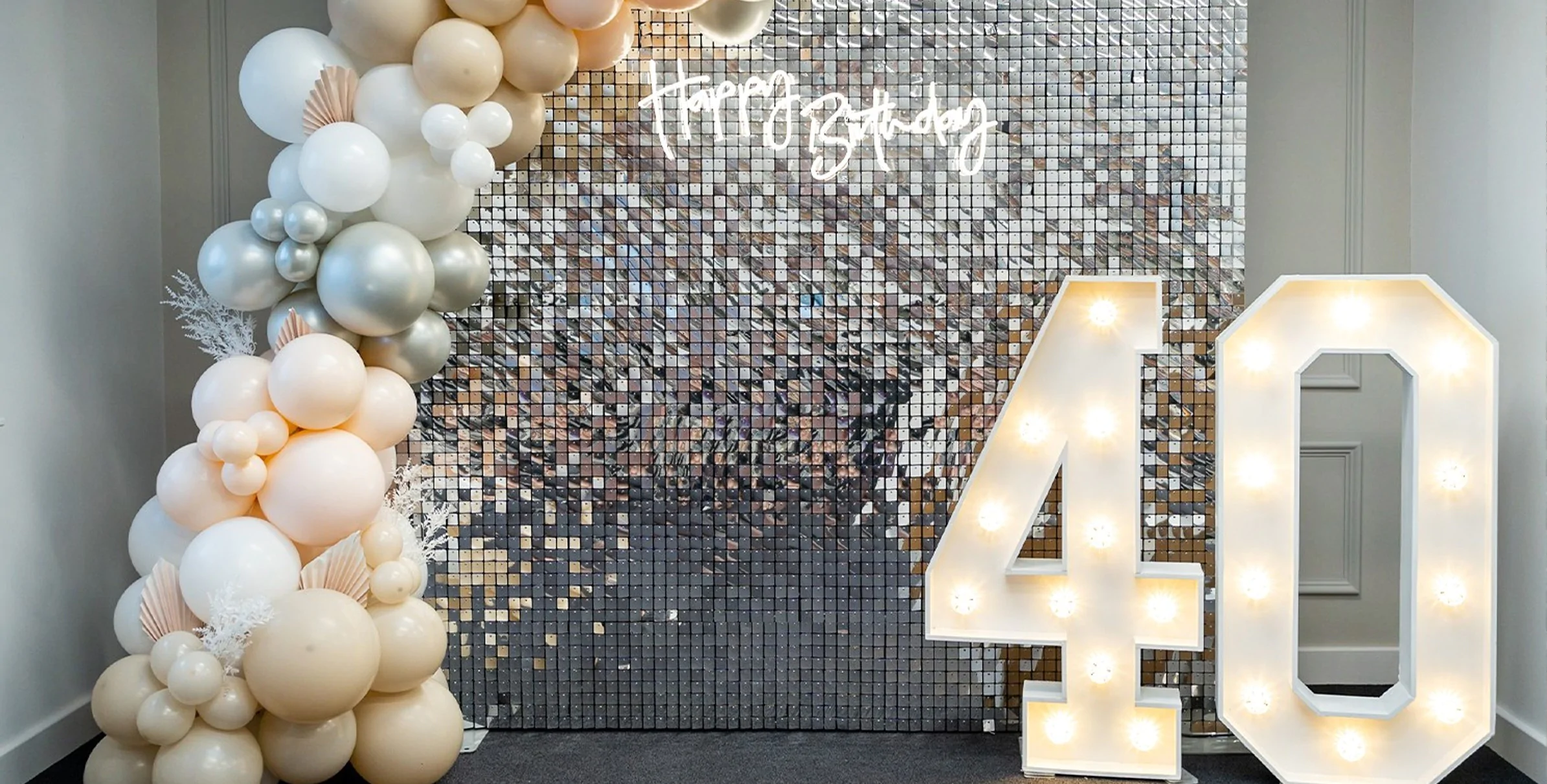 This full backdrop setup will create a truly stunning and high-impact focal point for your party. With a choice of 4 sequin wall colours, five different neon signs, and balloons in neverending colour combinations, alongside light-up numbers of the years you're celebrating, you can create the perfect installation for you.