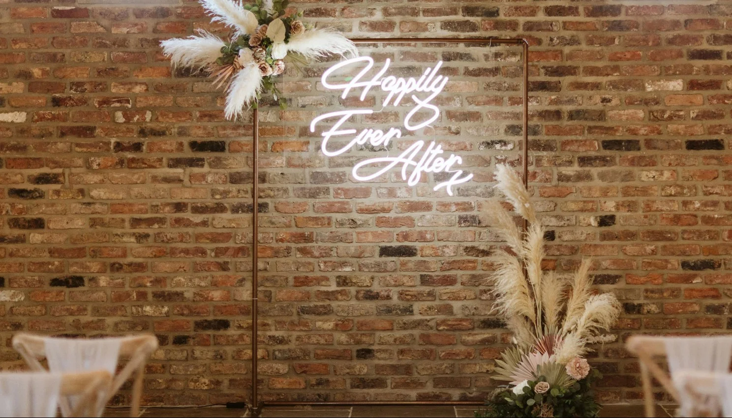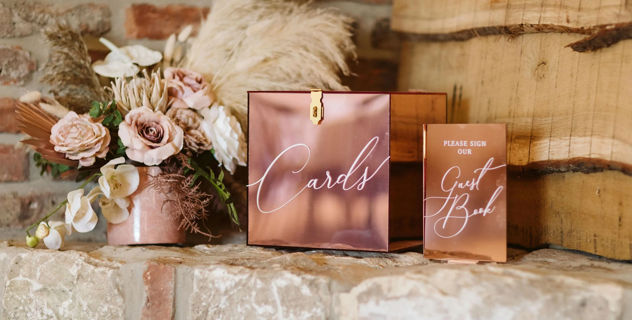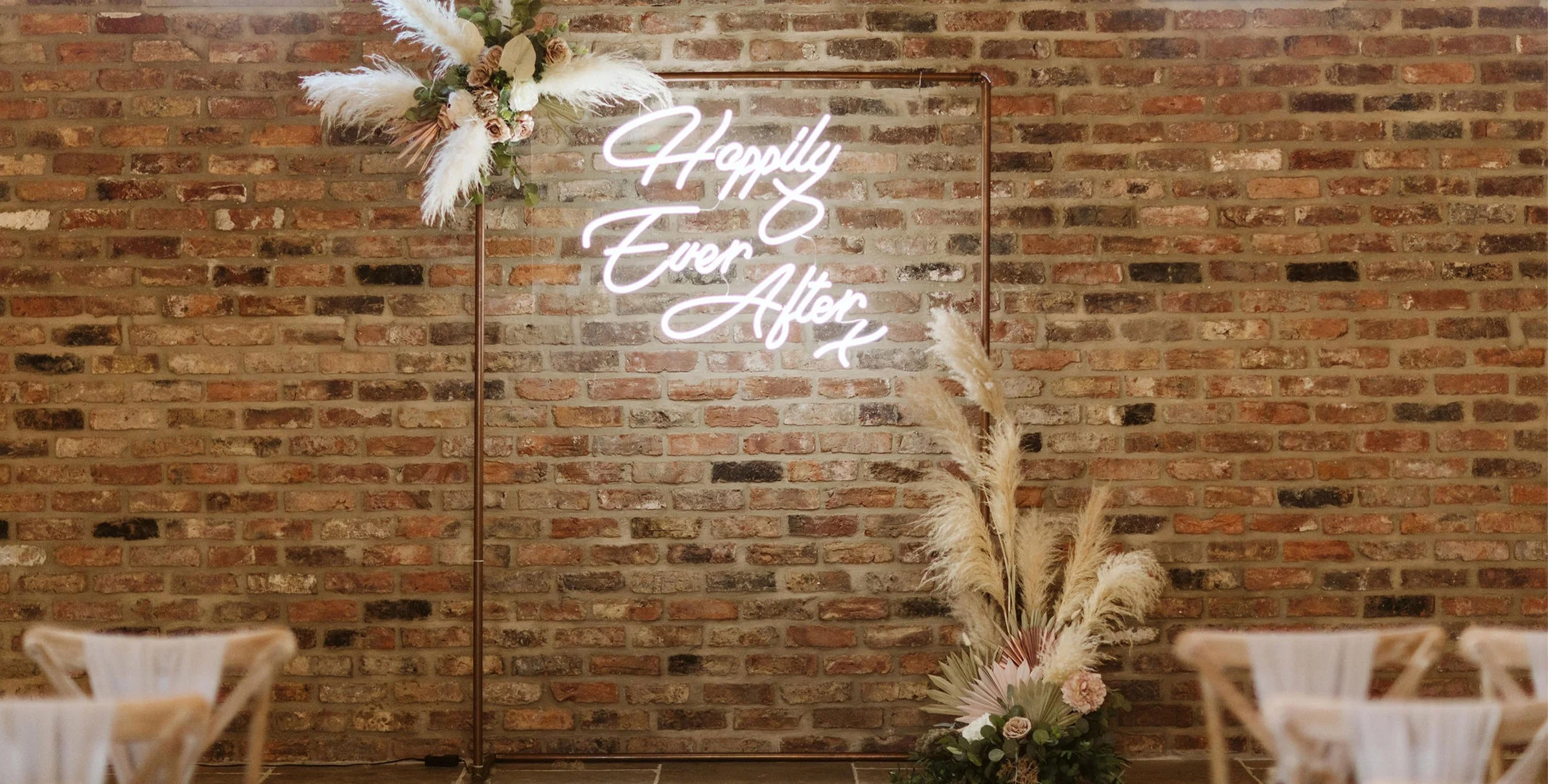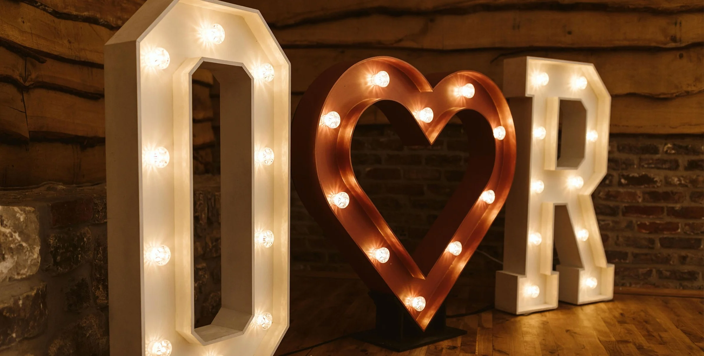 The Neon Sing hung on our Copper Frame is a full-sized backdrop at 7ft Tall and 5ft Wide, so is perfect for so many features on your day - behind you as you say your vows, at the top table whilst you eat and enjoy your speeches, or behind the cake for those all-important cake cutting pictures - wherever you choose this backdrop will ensure the pictures are extra sepcial. Your initials in lights will look super special with our beautiful Copper Heart between, twinkling by the dancefloor, whilst the matching mirrored acrylic card box and table numbers will give a subtle but real on-trend feel to all your table decor.