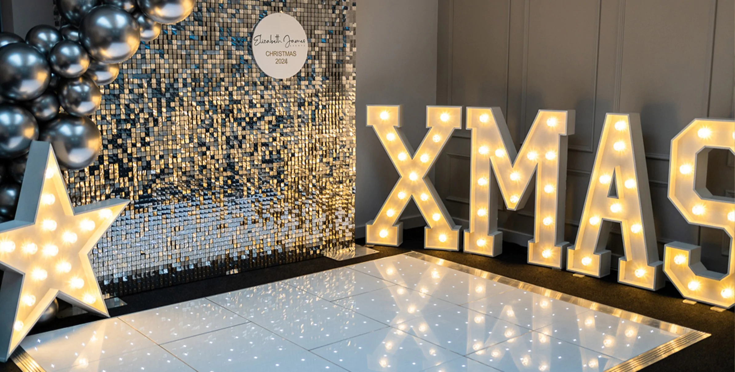 The white LED dance floor and 4 foot white light-up letters will add a real wow factor to any event space and you can choose any word that works for you - it could be your company name or a festive/celebratory word.