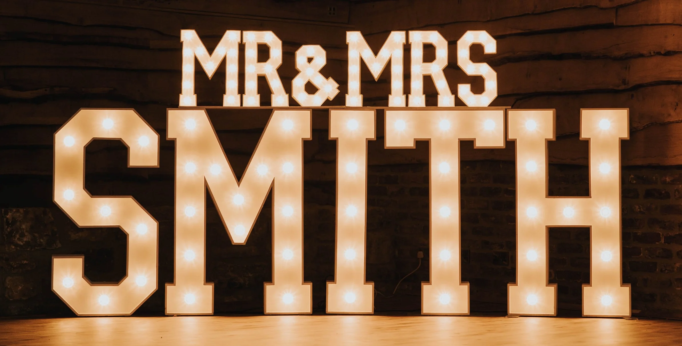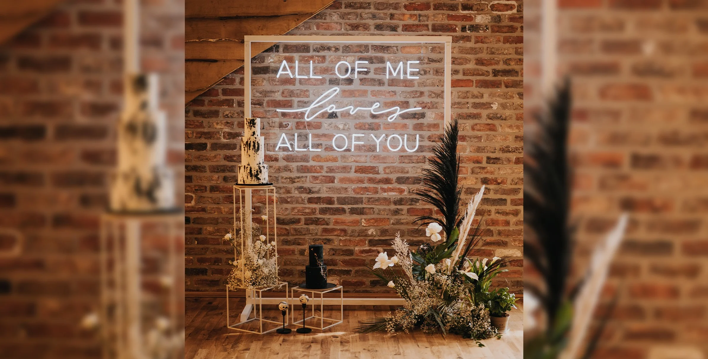 Our White Surname letters provide the best possible backdrop for your first dance pictures, whilst the Neon on White Frame can be used behind you as you say your vows, or at the top table. The Ivory Flower Wall gives you a second backdrop which can be used as either of these too, or as a perfect photo opportunity for you and your guests. The matching Clear Acrylic Card Box and Table Numbers will ensure your whole day compliments eachother, with a chic high-end overall feel.