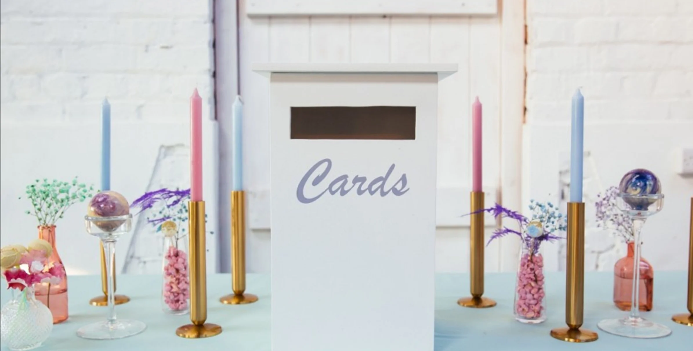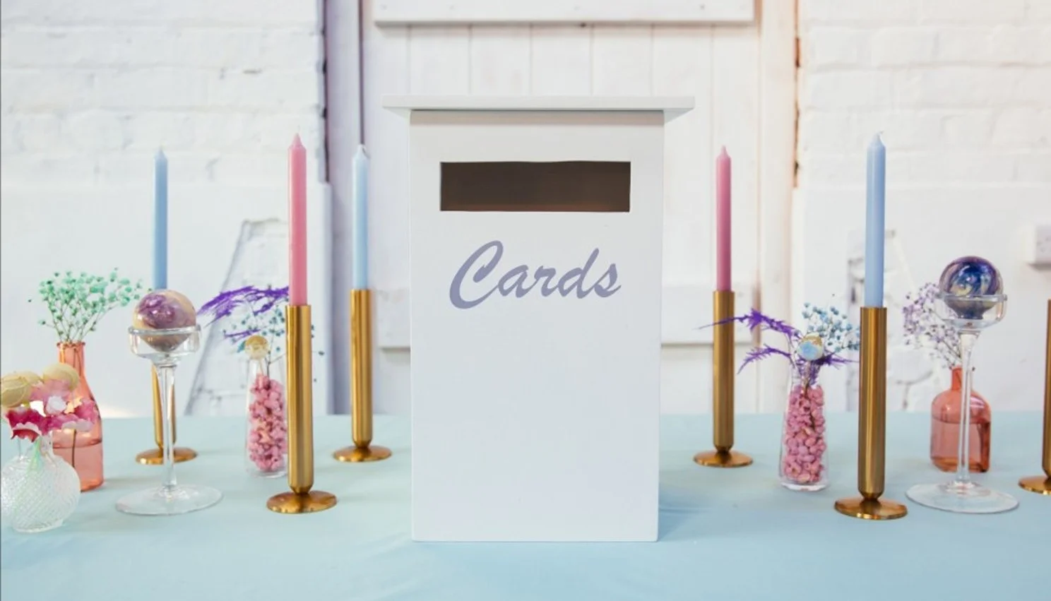 Perfectly practical and pretty! This will keep all of your cards safe throughout the day, and will look super pretty too - just add a stem or two of your flowers to tie it in with the rest of your decor.