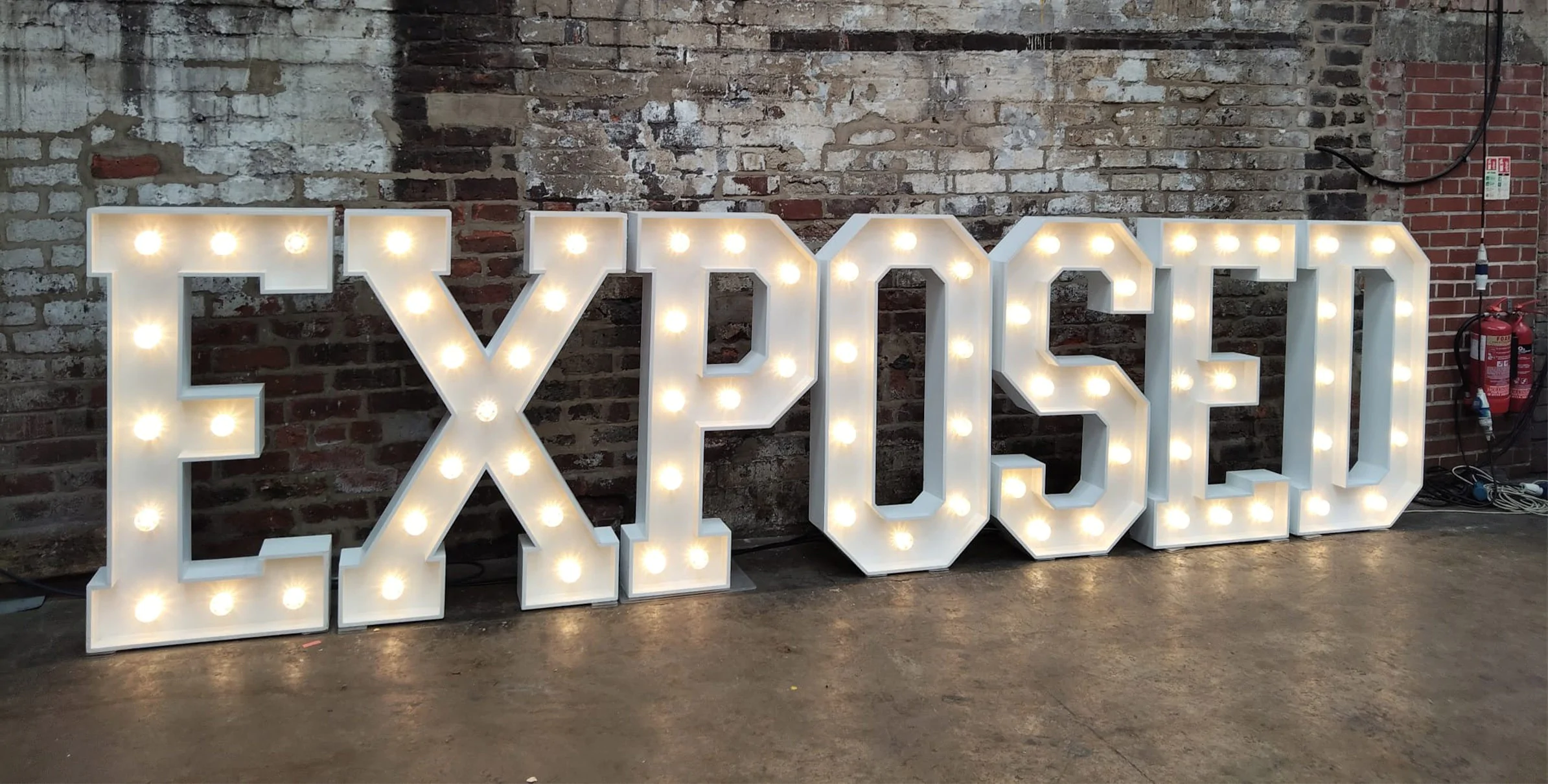 Each letter and item have its own single socket. We bring plenty of extension leads of varying lengths to ensure we can always work with the power supplies available.