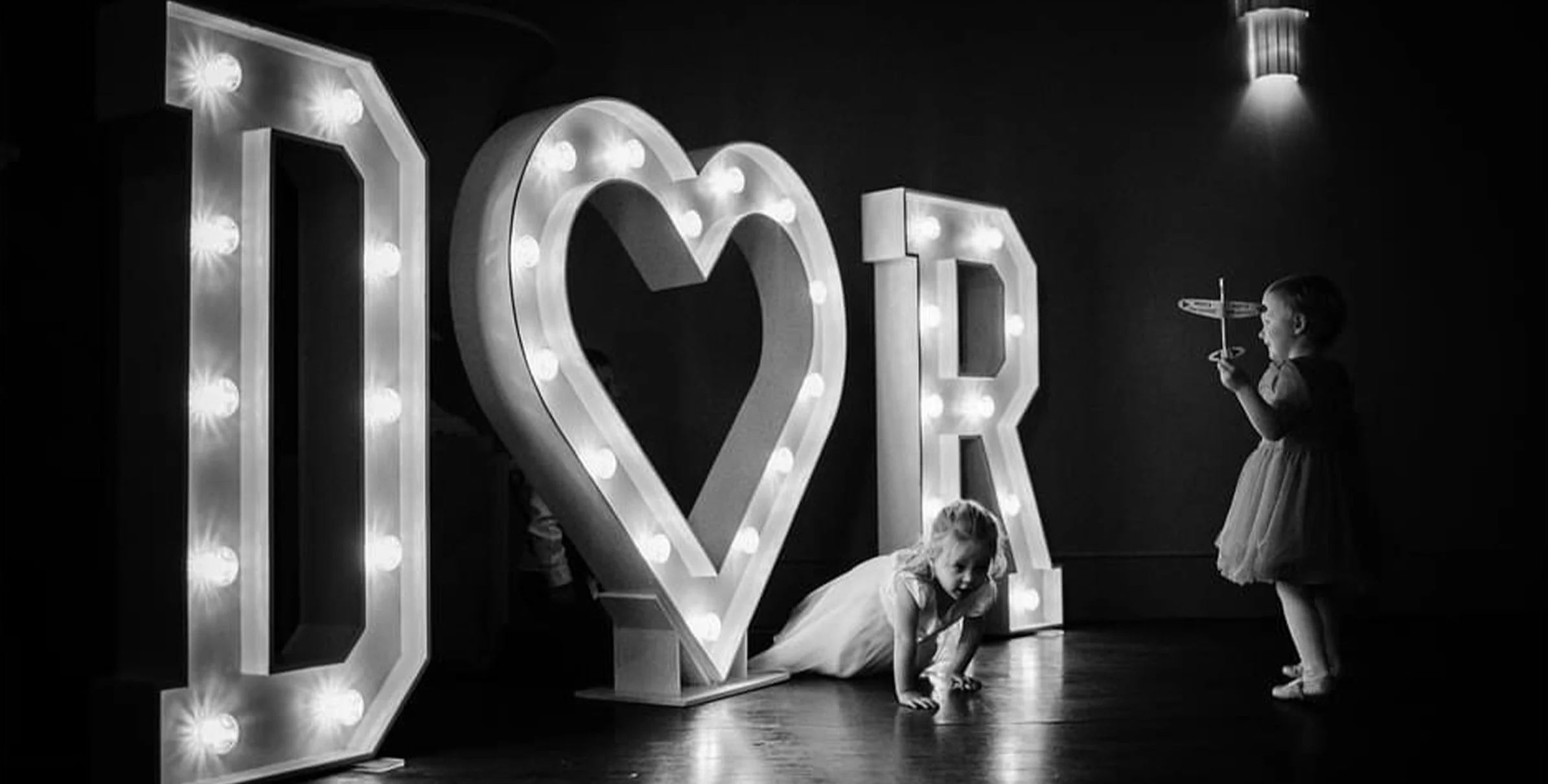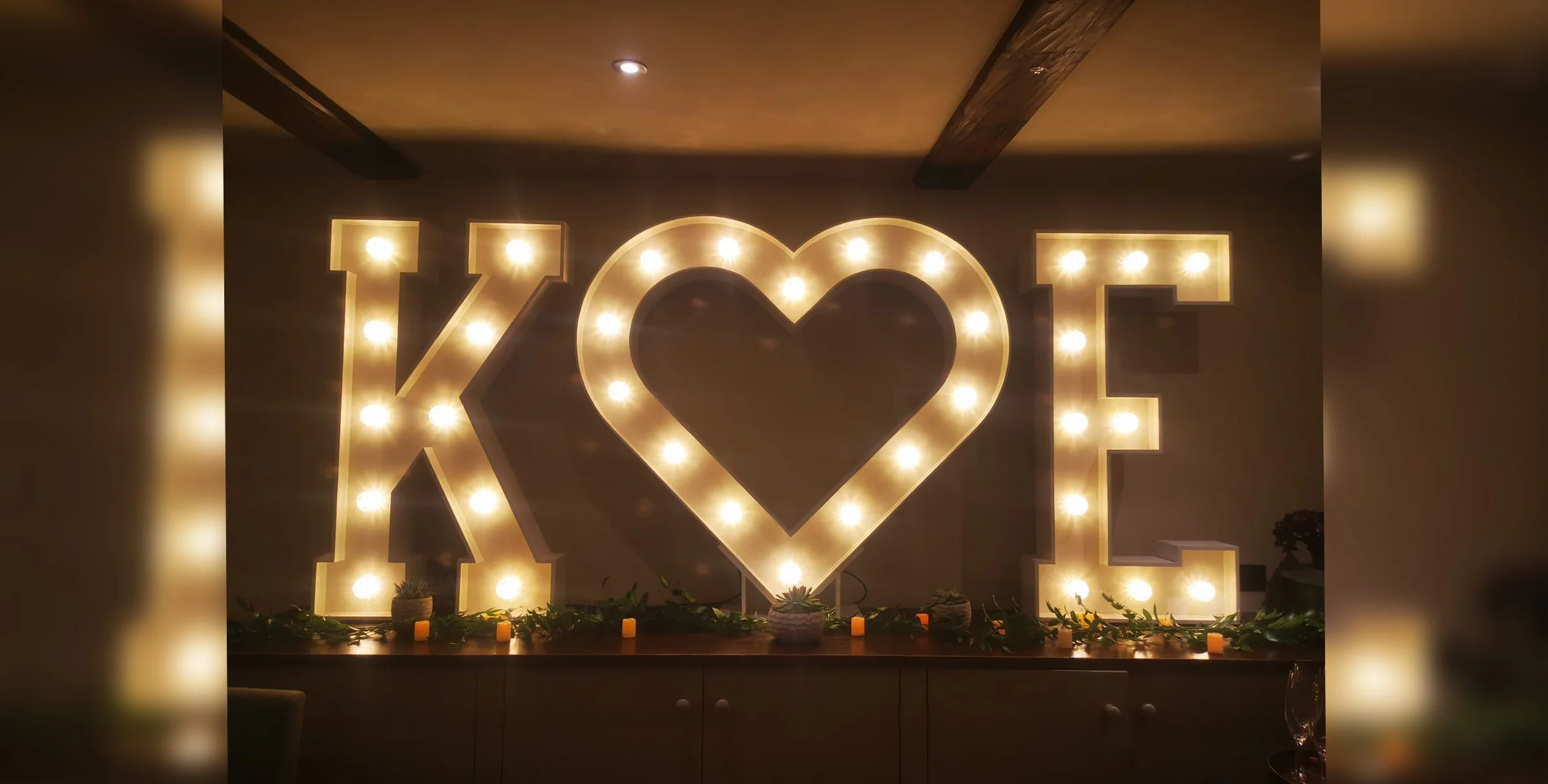 Our 4ft heart looks great between full names, surnames, initials or just stood alone to brighten another area of your venue. Why not use different coloured bulbs in your heart to compliment your colour scheme!