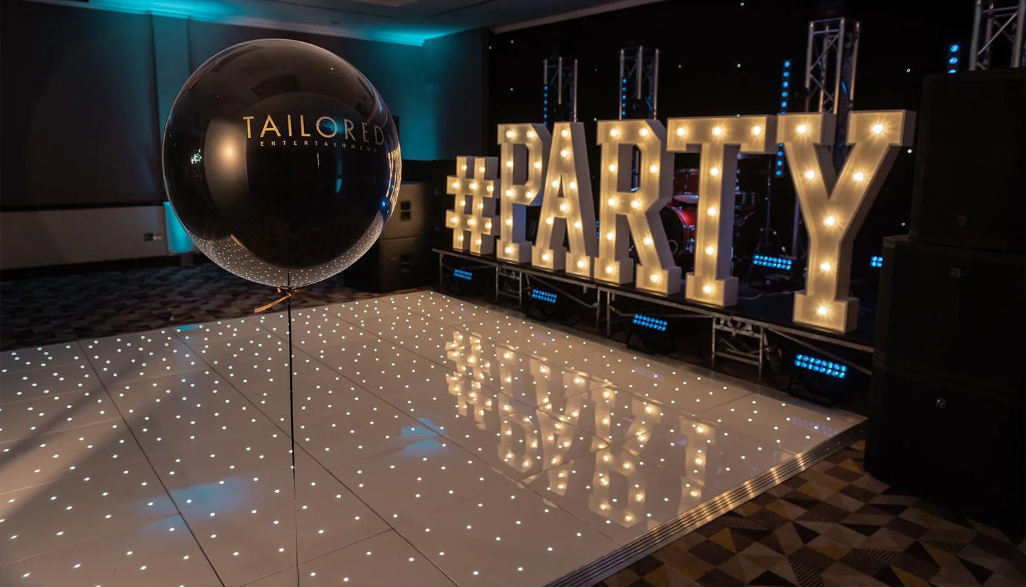 You've chosen the perfect Reigate venue for your event, but now it's time to personalise that space with a premium corporate decor package. Our range features decor pieces for all settings - a sequin wall featuring your own branding and themed balloon garland can be the perfect backdrop for your welcome drinks photos, and your party will go to another level with a white LED dance floor, accompanied by your company or event name in large light-up letters.