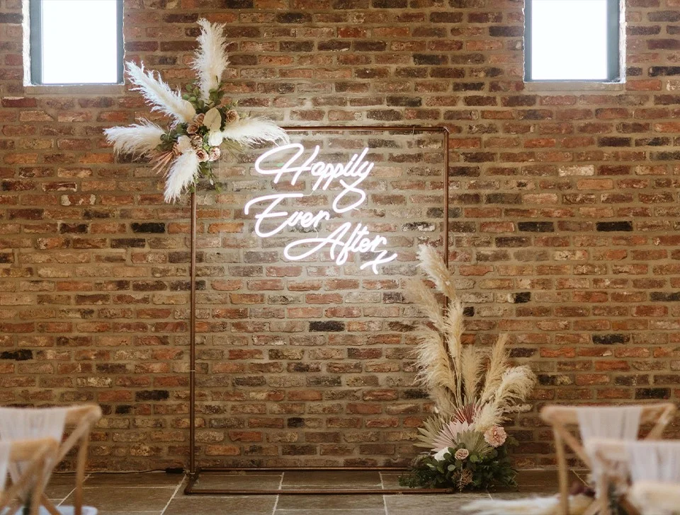 Elizabeth James Events offer a bespoke neon sign service, please get in touch with our expert team and they'll be able to assist with the design and provide costs for you to purchase your very own neon, which you can keep to use at future events.